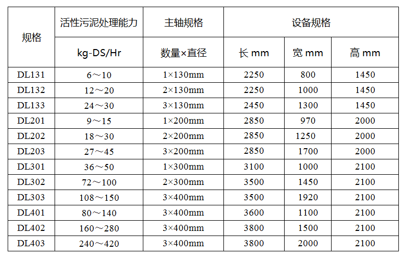 涌清叠螺污泥脱水机设备参数表